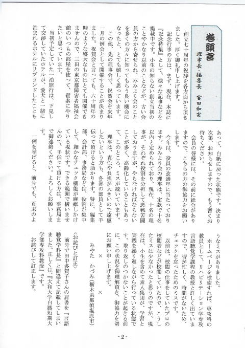 前号で田中多賀子さんの肩書を『言語聴覚学科長』と間違えて記載してしまいました。