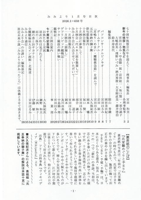 「新みみより」誌 2026年1月号完成(通算659号) 1月15日発行