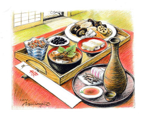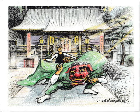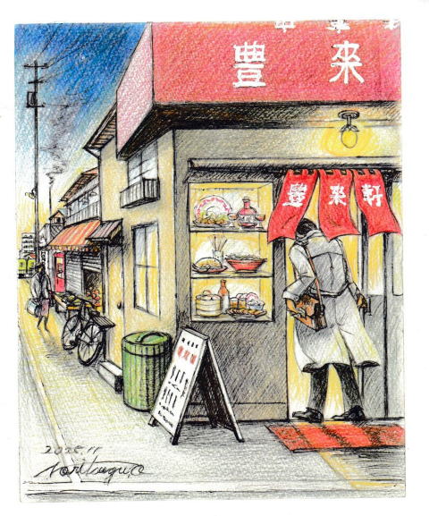 駅前ロータリー点景(画:大久保紀次) |